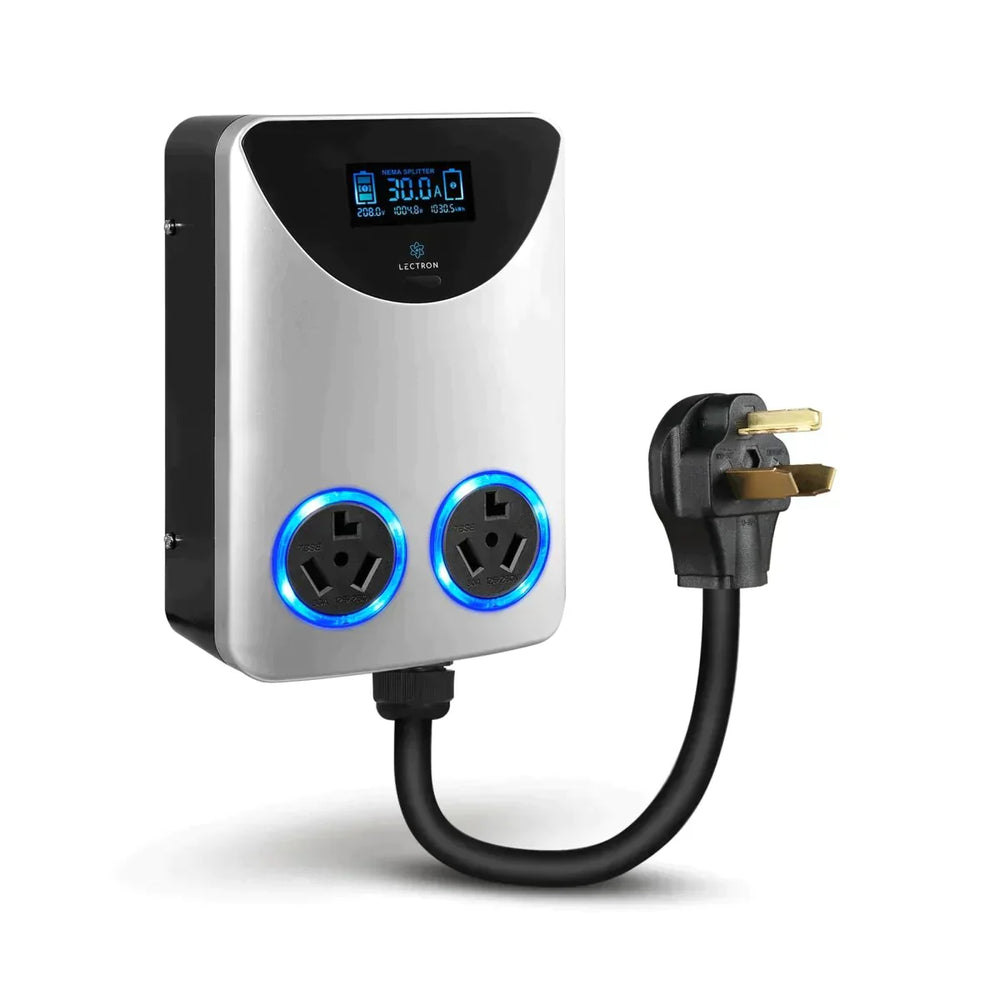 CHARGE MORE CONVENIENTLY: This Lectron EV power splitter lets you use one outlet to power your Level 2 EV charger and high-powered appliance (washer, dryer, etc) - eliminating the need to install a second high-powered NEMA outlet in your home.